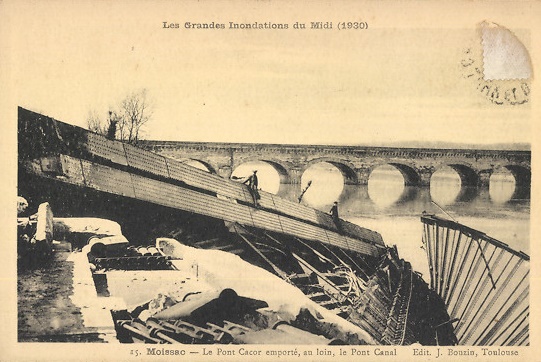 Cette nuit diluvienne fit 131 victimes et emporta 1400 maisons. Sur les 7 400 habitants que comptait alors Moissac, 5 896 perdirent leur logis.