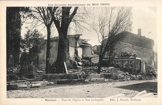 Une inondation des plus cataclysmique s’est abattue sur le Midi de la France et la commune n’est pas épargnée. Si la région est habituée au tumulte du Tarn, cette inondation est qualifiée par les spécialistes de cinq-centennale (qui arrive tous les 500 ans). Cette terrible nuit du 3 mars 1930 inonda 75% de la ville. Elle fit 131 victimes et emporta 1400 maisons. Sur les 7 400 habitants que comptait alors Moissac, 5 896 perdirent leur logis.
