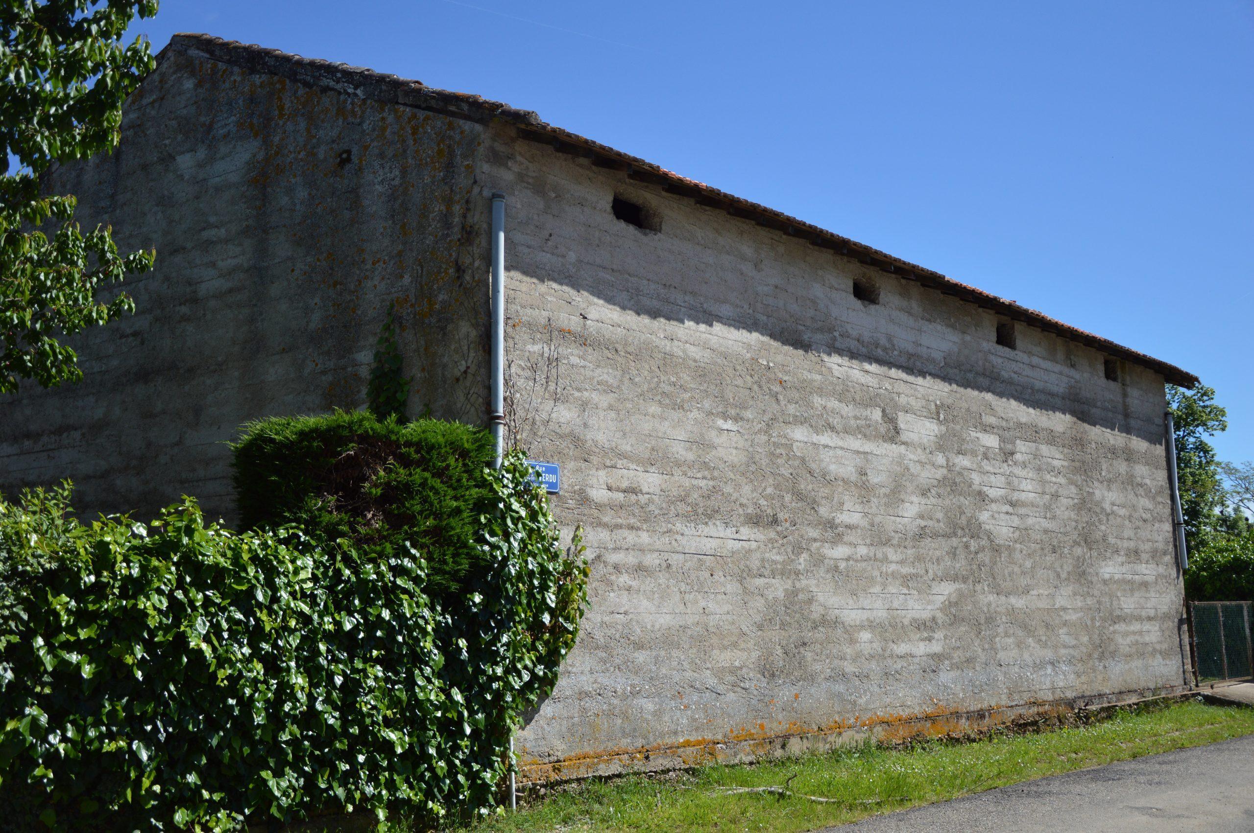 Exemple de construction qui fait bien apparaître la technique de construction avec le béton banché comme cela s’est fait après l’inondation. Le but de cette technique était de rendre le bâti indestructible, d’autant que sont inclus dans ces coffrages de nombreux éléments métalliques, comme parfois des charrues et des bandages de roues de charretées. Il est à noter que ce mur est « brut » et que la plupart des maisons reconstruites sont de ce type sous le crépi.