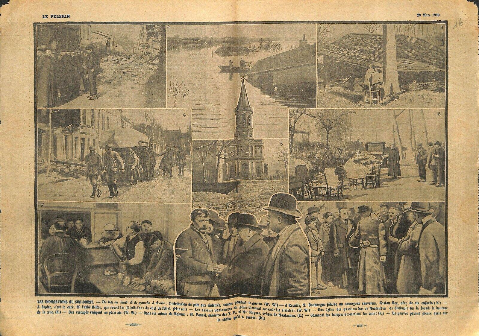 Localement, les communes s’organisent. Afin de protéger les habitants des convois sont lancés dans le but de transporter les villageois sinistrés, qui bénéficient alors de l’hospitalité des villages voisins d’Orgueil, Labastide-Saint-Pierre ou encore Villebrumier. Moteur de l’effort de reconstruction, une puissante dynamique d’entraide se met également en place, mobilisant de nombreux acteurs. Grâce aux relations du Général de Seguin de Reyniès, en garnison à Besançon, du Doubs et de la Haute-Marne proviennent alors des vêtements, outils, cuisinières, poêles, meubles, charrettes et cheptel, tandis que des programmes d’aide sont montés par des écoles, des gérants d’usines tel Albert Brémant, Reyniésien gérant du Moulin de Saliens, ou encore par le journal “L’Ami du Peuple”, basé à Paris, voient le jour. L’écho de la catastrophe traversera même les frontières, certains pays apportent leur soutien aux sinistrés français à l’instar du roi Georges V du Royaume-Uni qui a envoyé un télégramme au président de la république. Il lui dit ceci : « J’ai appris avec le plus profond regret les inondations désastreuses qui ont désolé de si vastes régions dans le sud et le Sud-Ouest de la France et je m’empresse de vous exprimer, Monsieur le Président, ma profonde sympathie pour les victimes et particulièrement pour ceux qui sont en deuil par suite de la perte déplorable des vies causées par ce désastre.».